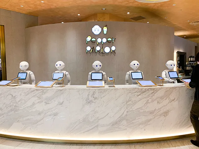 ここレストランなんだけど、外から見ただけなんだけでペッパーくんが30体以上いてびっくりした。。怖かった。。。。
